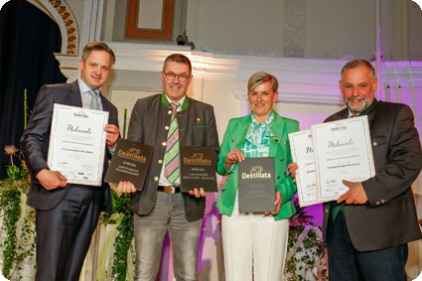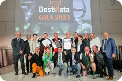 🥇 Goldmedaille: Whisky aus dem Sherryfass, Erdbeerbrand, Brotbrand, Pfirsichbrand, Heidelbeerlikör, Rum-Kokos-Likör, GIN mit